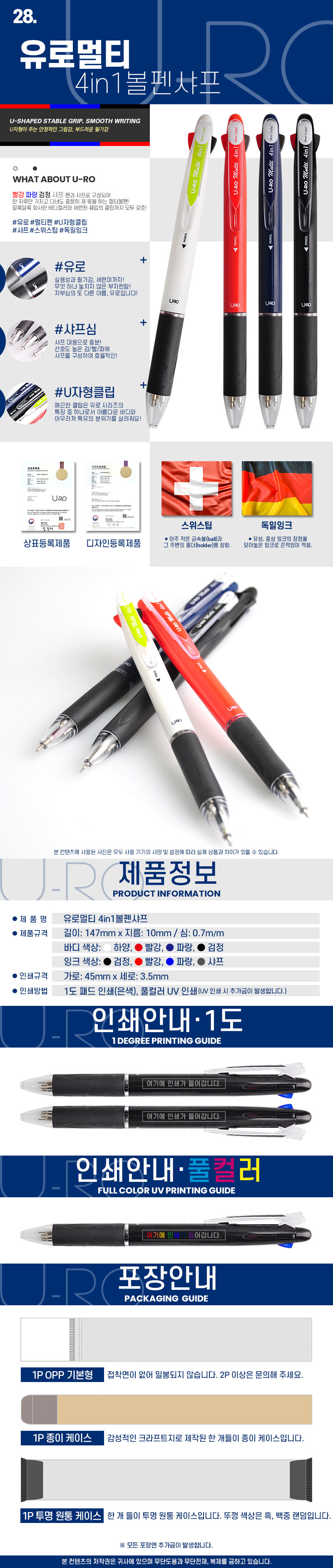 - 3가지 컬러의 볼펜과 샤프가 돋보이는 멀티볼펜- 가볍고 부드러운 필기감- 편안한 그립감과 필기 시 쥐기 편한 바디 두께- 다양한 색상의 바디컬러