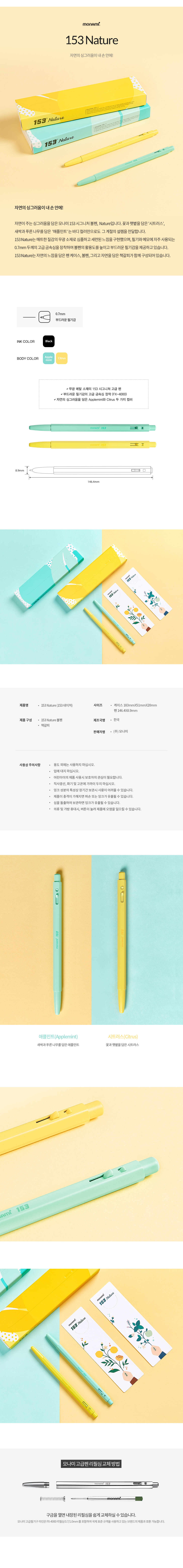 - 믿있을수 있는 브랜드 MONAMI- 자연을 생각나게하는 색상의 구성- 가볍고 부드러운 필기감- 편안한 그립감과 필기 시 쥐기 편한 바디 두께