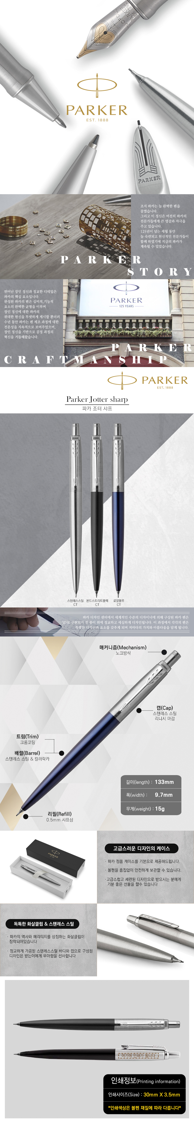- 섬세하고 세밀한 기술력이 돋보이는 파카 브랜드- 대중적이고 세련된 디자인의 조터 시리즈- 견고하고 튼튼한 파카 정품 케이스- 섬세한 레이저각인
