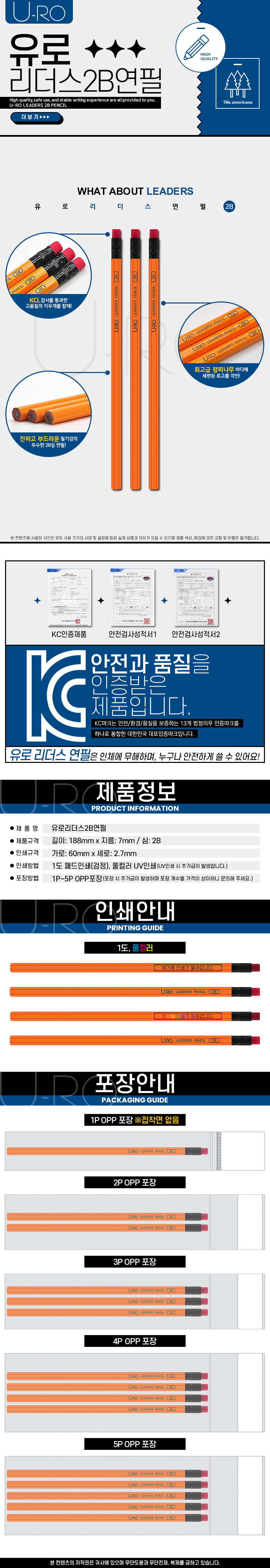 - 육각형의 각이 정확하게 살아있는 바디- KCL검사를 통과한 고품질 지우개로 마감처리- 진하고 부드러운 필기감의 우수한 2B연필- 최고급 참피나무 바디에 URO 각인