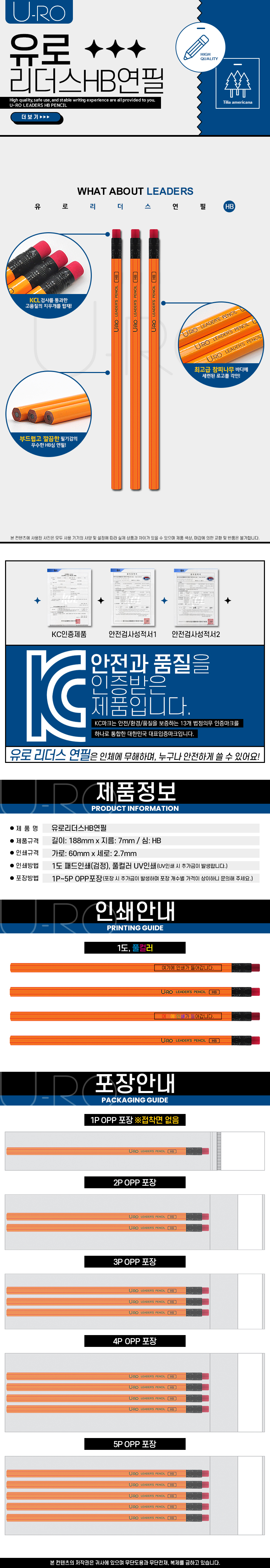 - 육각형의 각이 정확하게 살아있는 바디- KCL검사를 통과한 고품질 지우개로 마감처리- 진하고 부드러운 필기감의 우수한 HB연필- 최고급 참피나무 바디에 URO 각인