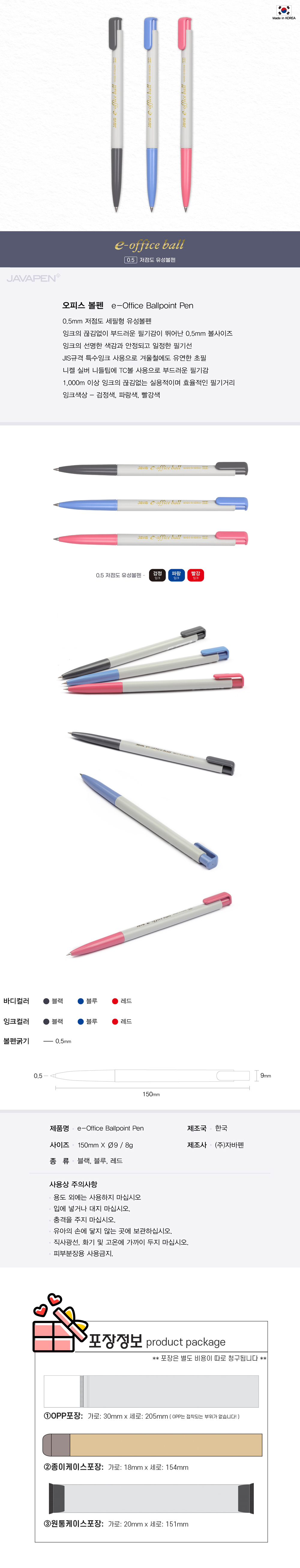 - 국산필기구의 자존심 JAVA- 다양한색상의 구성- 부드러운 필기감 초저점도 유성- 편안한 그립감과 필기 시 쥐기 편한 바디 두께