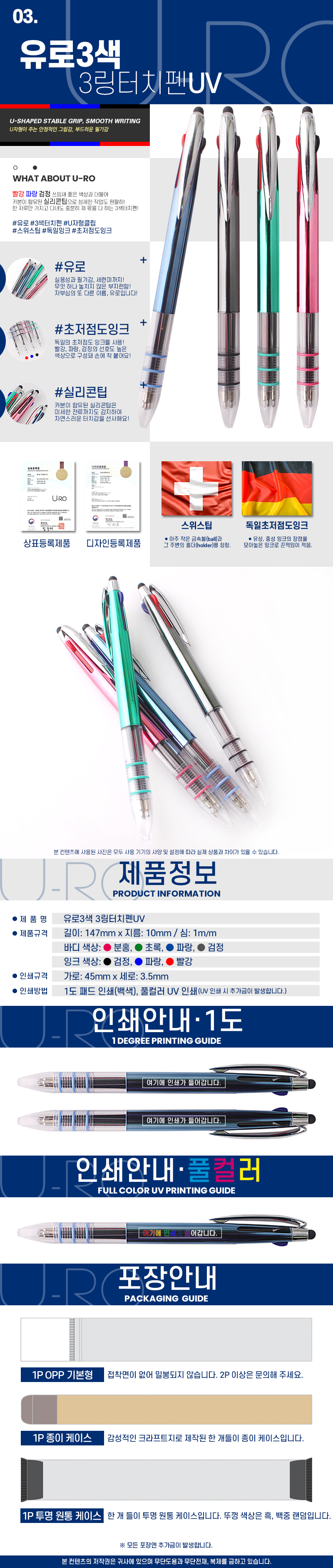 - 3가지 컬러의 볼펜이 돋보이는 3색볼펜- 가볍고 부드러운 필기감- 편안한 그립감과 필기 시 쥐기 편한 바디 두께- 다양한 색상의 바디컬러