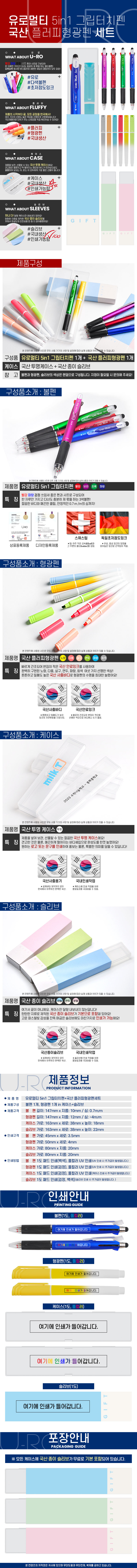 유로멀티5in1 그립터치펜&국산 플러피형광펜세트