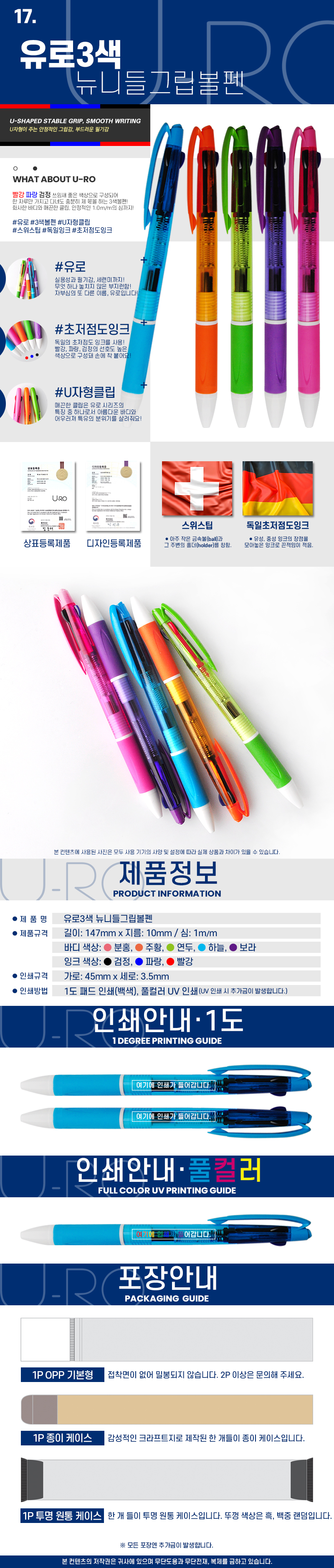 - 3가지 컬러의 볼펜이 돋보이는 3색볼펜- 가볍고 부드러운 필기감- 편안한 그립감과 필기 시 쥐기 편한 바디 두께- 다양한 색상의 바디컬러