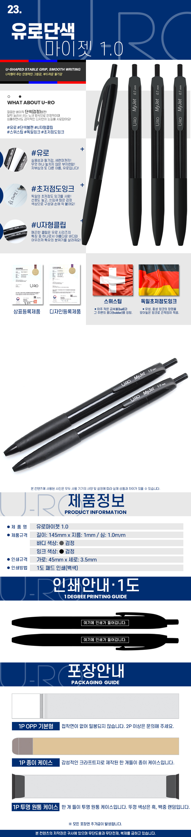 - 대중적이고 부드러운 필기감이 강점인 유로 브랜드- 가볍고 부드러운 필기감- 편안한 그립감과 필기 시 쥐기 편한 바디 두께- 심플하고 깔끔한 색상의 바디컬러