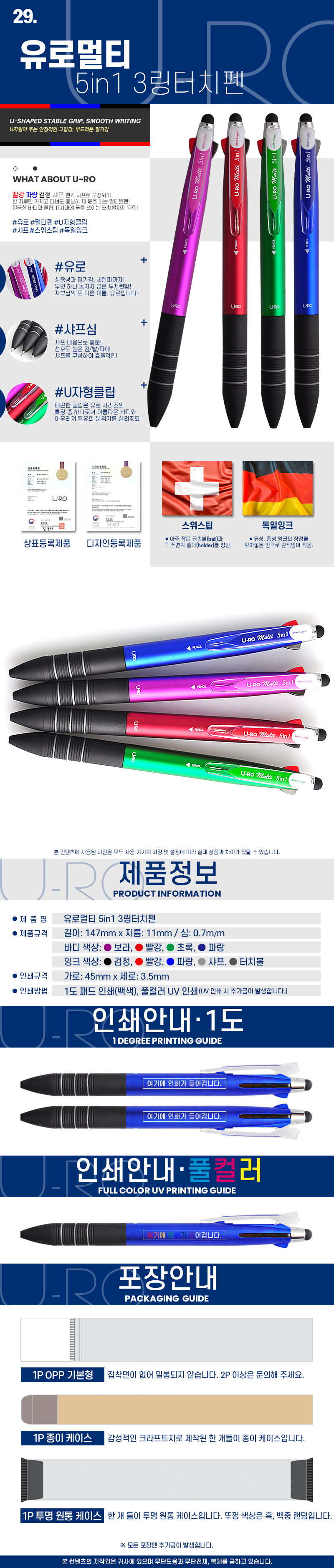 유로멀티5in1 3링터치펜(독일잉크/초저점도잉크)