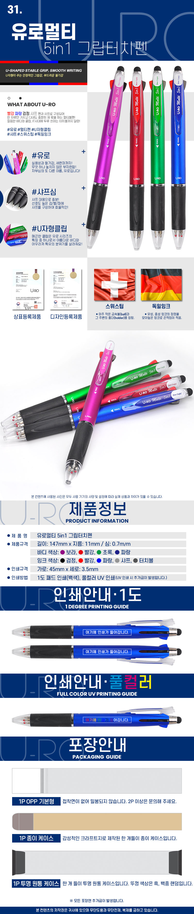 - 3가지 색상의 볼펜심과 샤프와 터치기능 탑재- 가볍고 부드러운 필기감- 편안한 그립감과 필기 시 쥐기 편한 바디 두께- 다양한 색상의 바디컬러